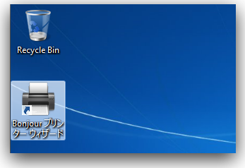 インストールが終了すると、デスクトップに「Bonjour プリンターウィザード」へのエイリアスができるので、ダブルクリックしてウィザードを起動します。