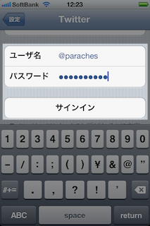下記の手順では「@paraches」というアカウントを iOS へ登録しています。