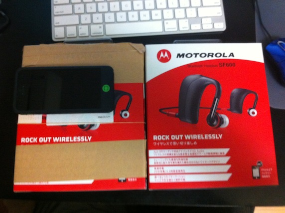 というわけで、オーダーした MOTOROLA SF600、届いた化粧箱は赤白で表紙?を開くと商品が見える。